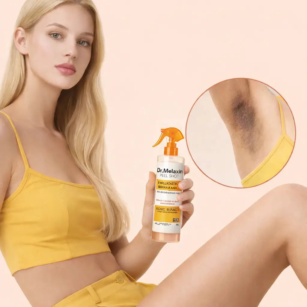Su fórmula exfoliante en spray combina keratina, ácido kójico y cúrcuma, una sinergia de activos que ayuda a eliminar células muertas, mejorar visiblemente la textura de la piel y revelar una apariencia más luminosa y renovada con el uso continuo.